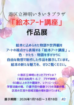 みなと図書館にて絵本アート教室作品展を行っています♪