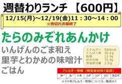 2025-12-17 ★12月15日(月)~12月19日(金)今週の週替わりランチのお知らせ★ -
