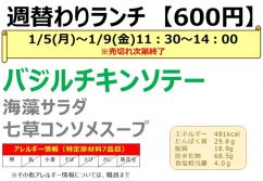 2026-01-05 ★1月5日(月)~1月9日(金)今週の週替わりランチのお知らせ★ -