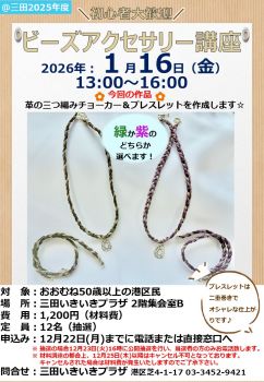 2026-01-21 「ビーズアクセサリー講座~革の三つ編みチョーカー&ブレスレッド~」を開催しました♪♪