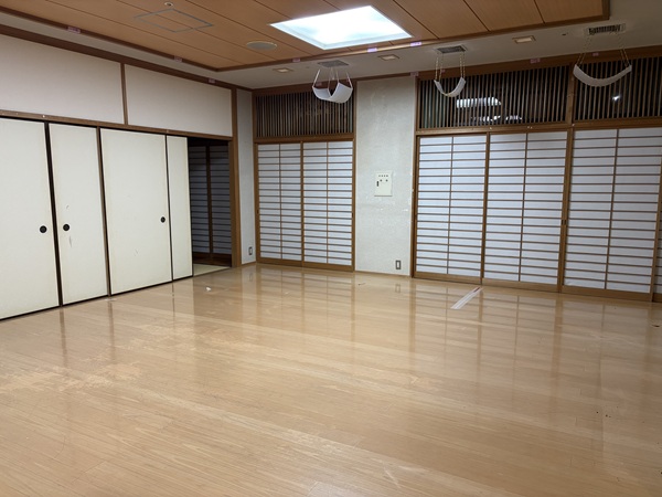 テーブルやソファー、本などが運び出されていつも賑やかなロビーやお部屋が、