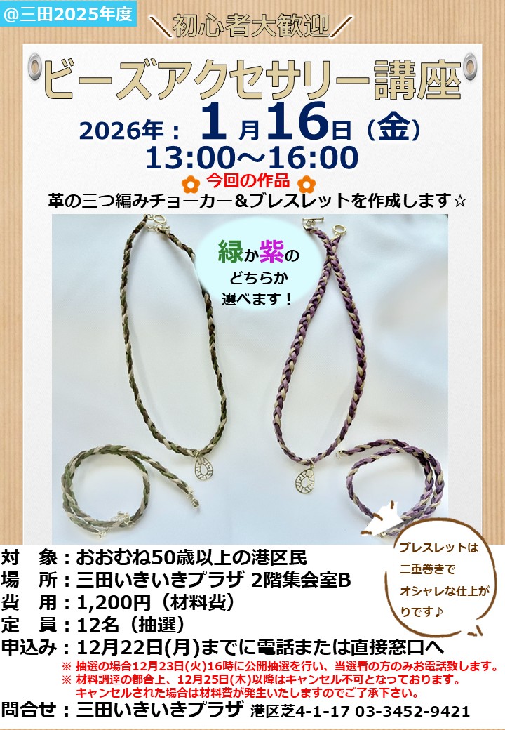 三田いきいきプラザでは過日、1月16日(金)13:00~16:00に