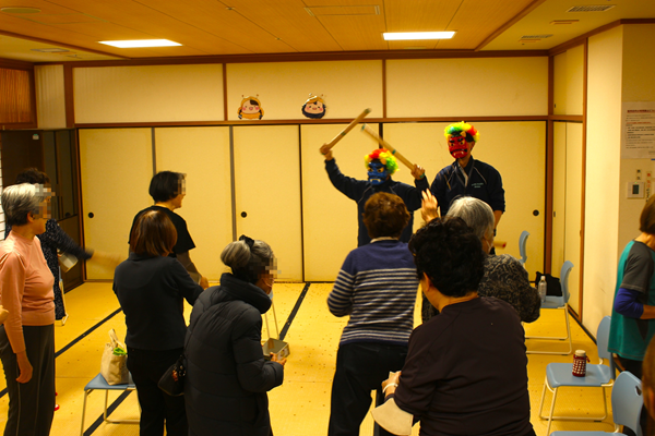 この日は筆者と当館館長が赤鬼・青鬼に仮装し、