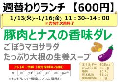2026-01-13 ★1月13日(火)~1月16日(金)今週の週替わりランチのお知らせ★ -
