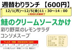 2025-12-02 ★12月1日(月)~12月5日(金)今週の週替わりランチのお知らせ★ -