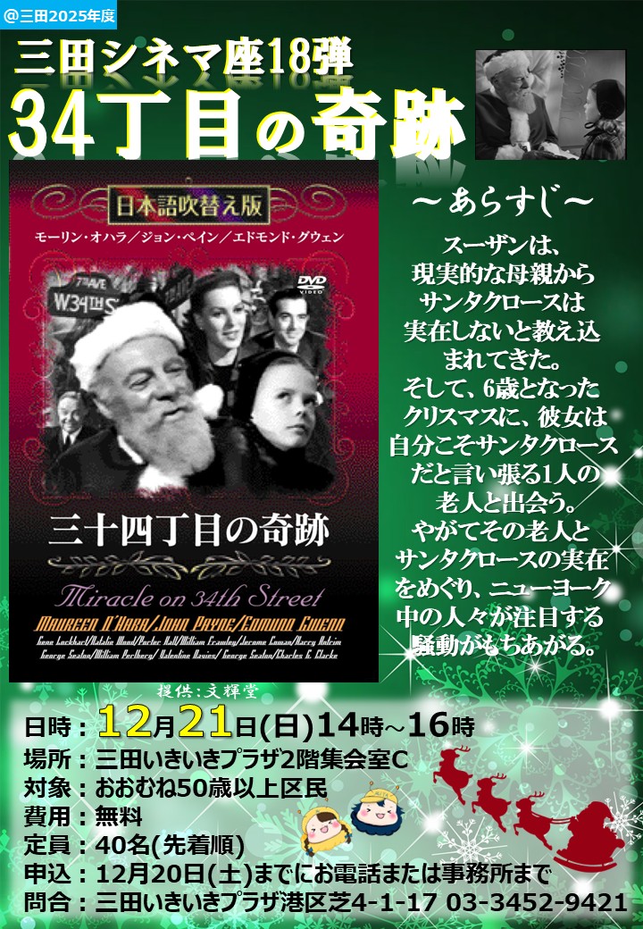 ★★★「三田シネマ座第18弾~34丁目の奇跡~」を上映します♪★★★