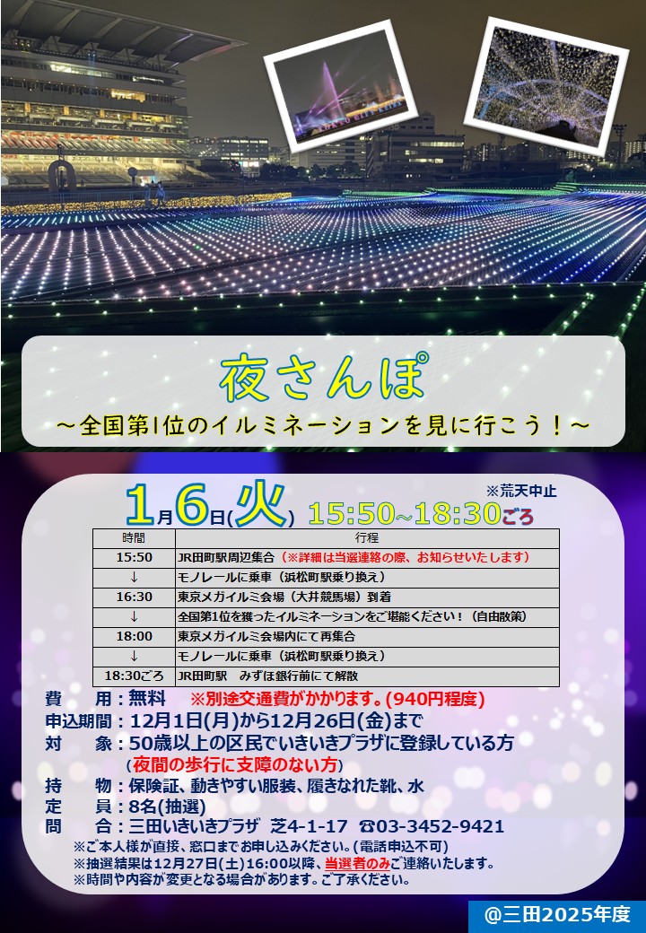 来る翌1月6日(火)、昨年度大好評だった「夜さんぽ~全国第1位のイルミネーションを見に行こう!~」