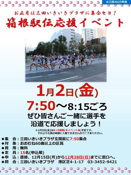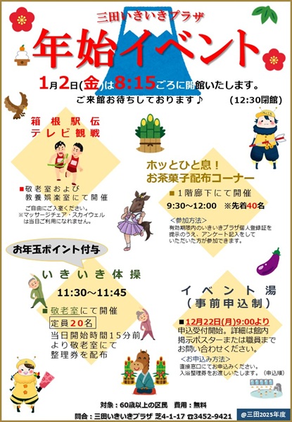 来る1月2日(金)、三田いきいきプラザでは毎年恒例の年始イベントを