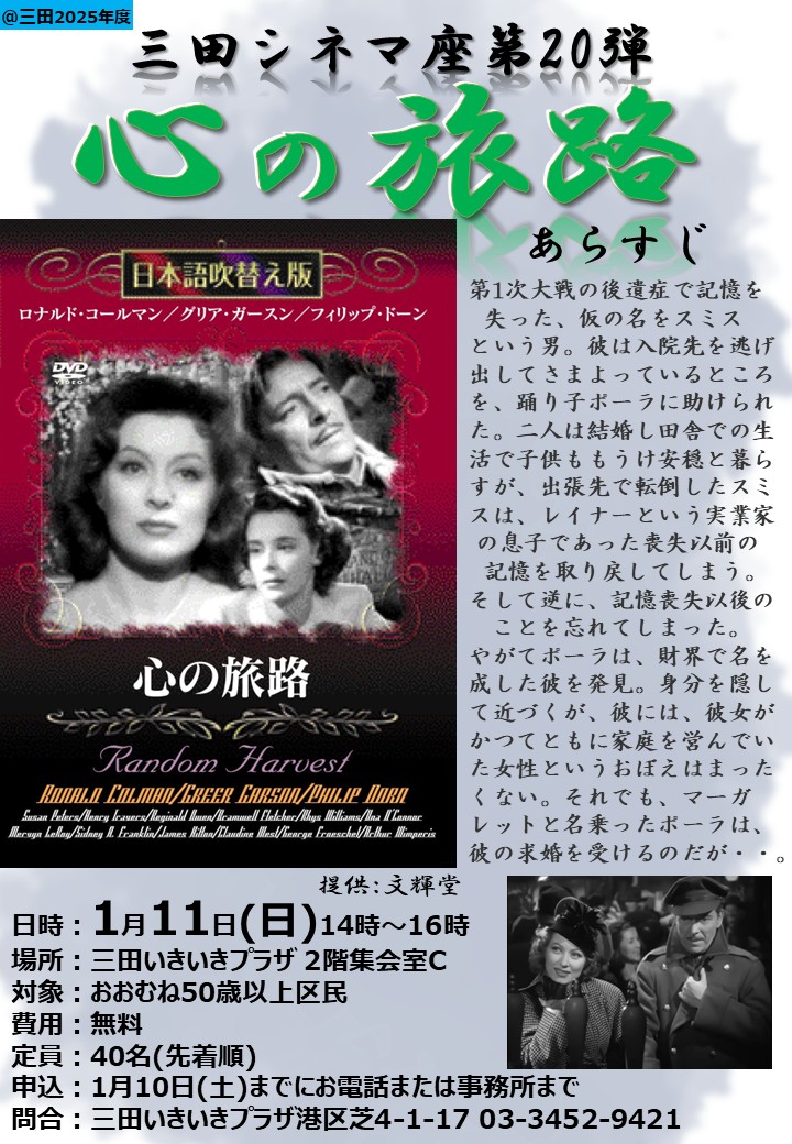 ☆☆☆「三田シネマ座第20弾~心の旅路~」を上映します!☆☆☆