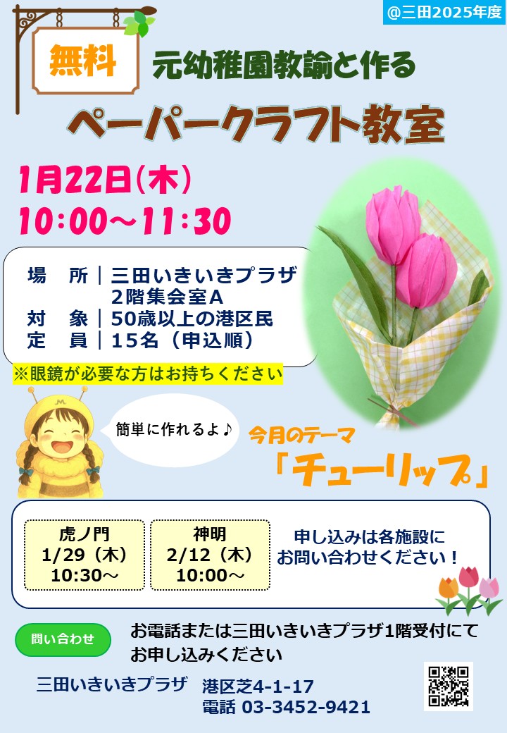☆☆☆「ペーパークラフト教室~チューリップを作ろう!~」開催します♪☆☆☆
