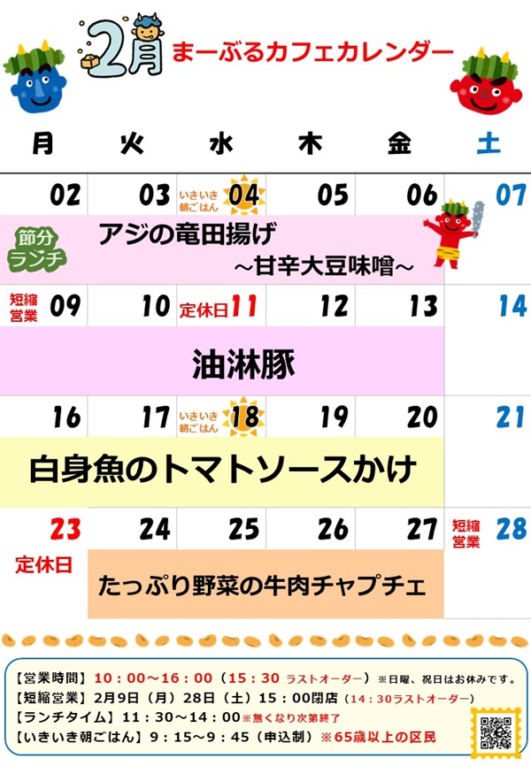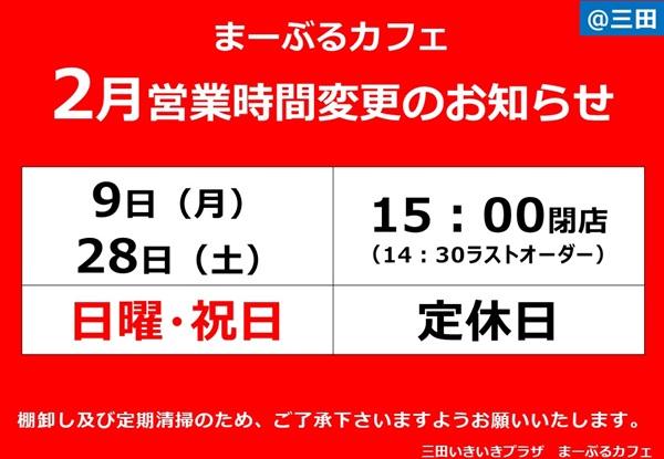 【三田まーぶるカフェ 2月のお知らせ】