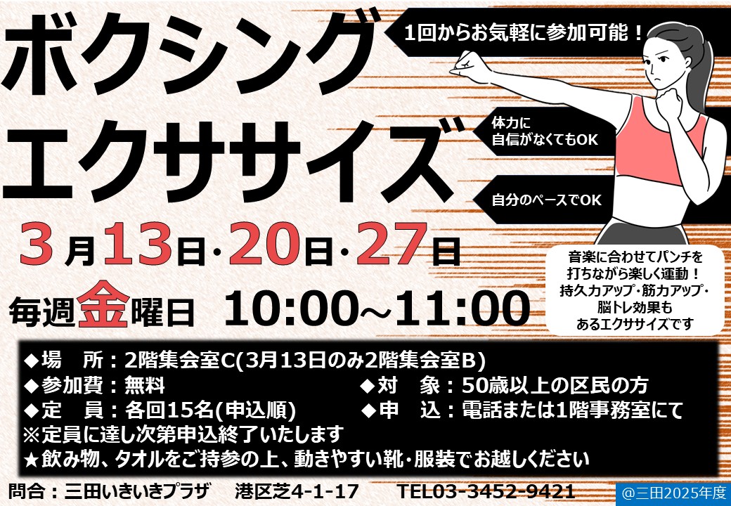 このたび、全3回開催の「ボクシングエクササイズ」を開催します!