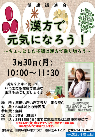 【健康講演会「漢方で元気になろう!」開催のお知らせ】