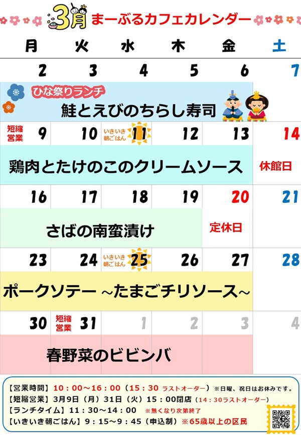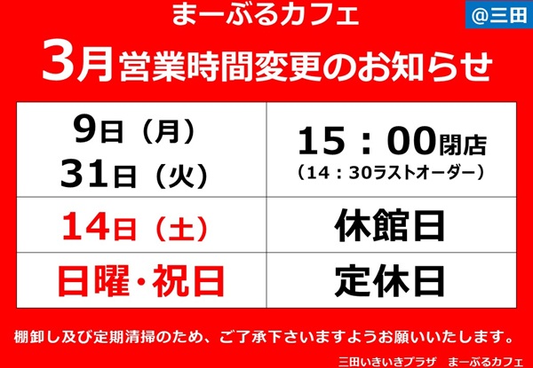 【三田まーぶるカフェ 3月のお知らせ】