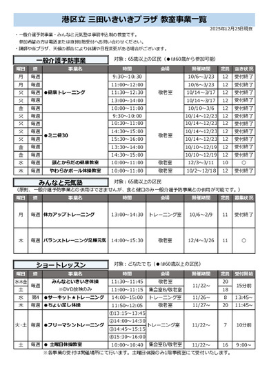 プログラムの詳しい内容につきましては、三田いきいきプラザまでお問い合わせください。