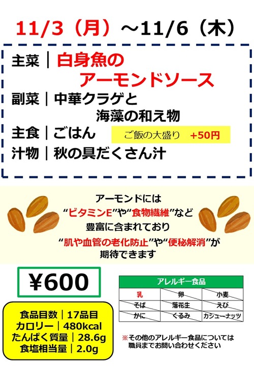 今週月曜日~木曜日は、白身魚のアーモンドソースの販売です!!