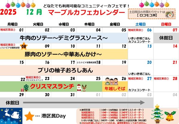 神明いきいきプラザ コミュニティカフェから12月のカフェ営業のお知らせです!