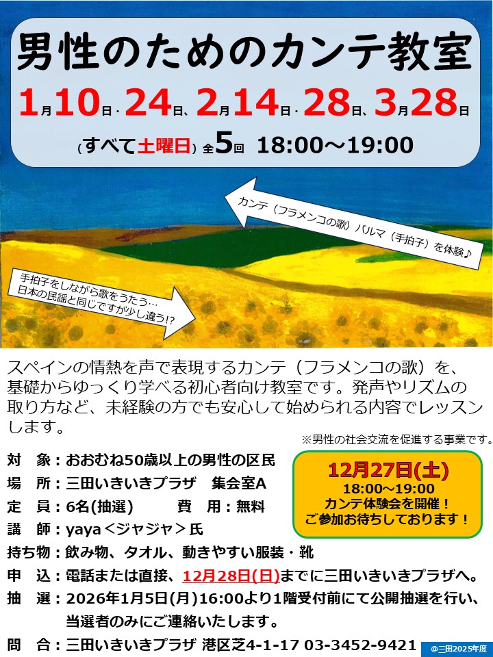 「男性のためのカンテ教室」を開催いたします! https://shiba-ikiiki.com/mita/news/details.php?ne_id=3562