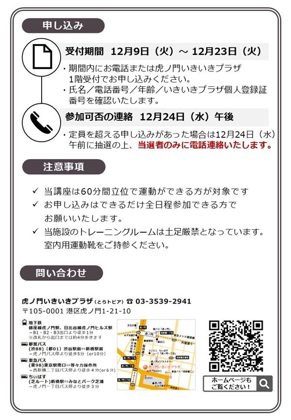 虎ノ門いきいきプラザまで当落の結果をお問い合わせください。