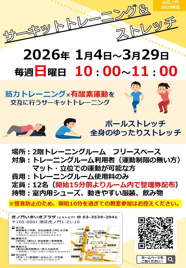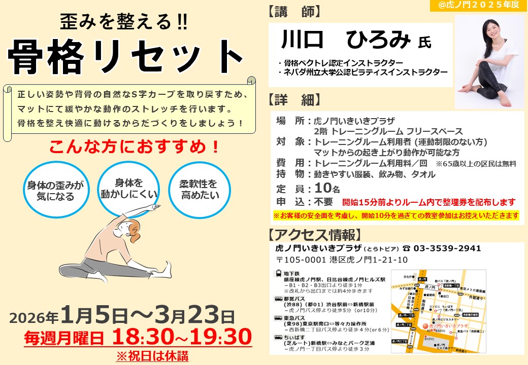 1月から開始する虎ノ門いきいきプラザのレッスンをご紹介します!