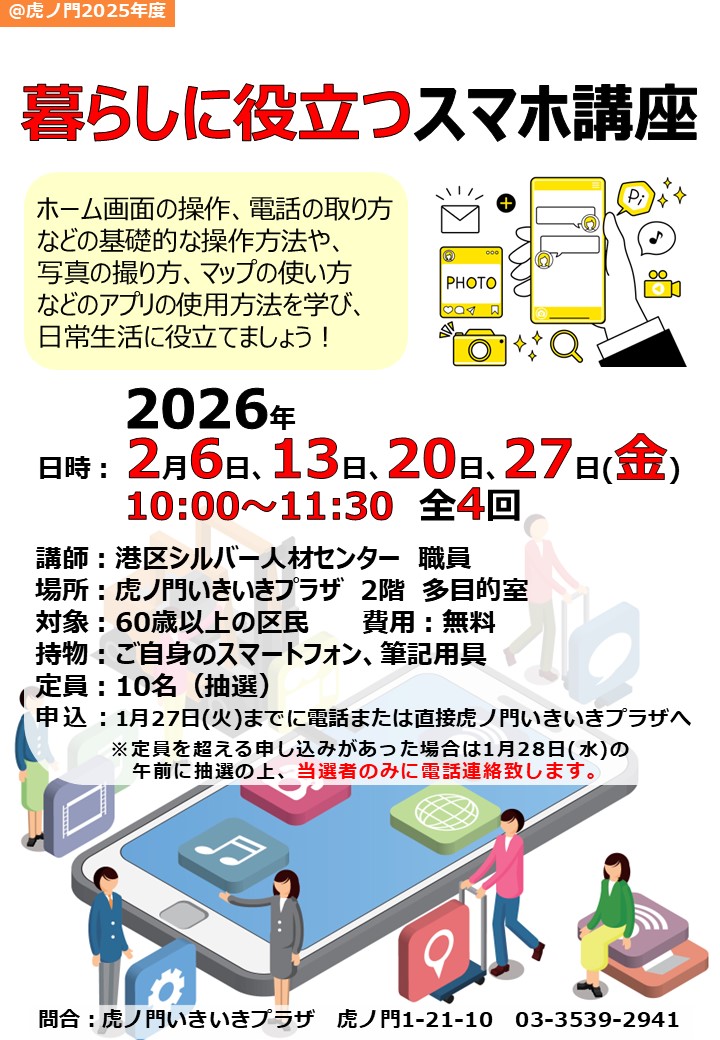 暮らしに役立つスマホ講座を開催します♪ https://shiba-ikiiki.com/toranomon/news/details.php?ne_id=3587 さて今回は、暮らしに役立つスマホ講座のご案内です。