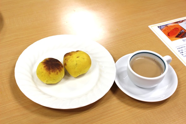 出来上がったかぼちゃあんパンをチャイティーと一緒に皆さんでいただきました。