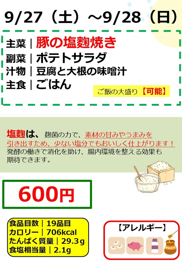 土日は、豚の塩麴焼きランチの販売です!