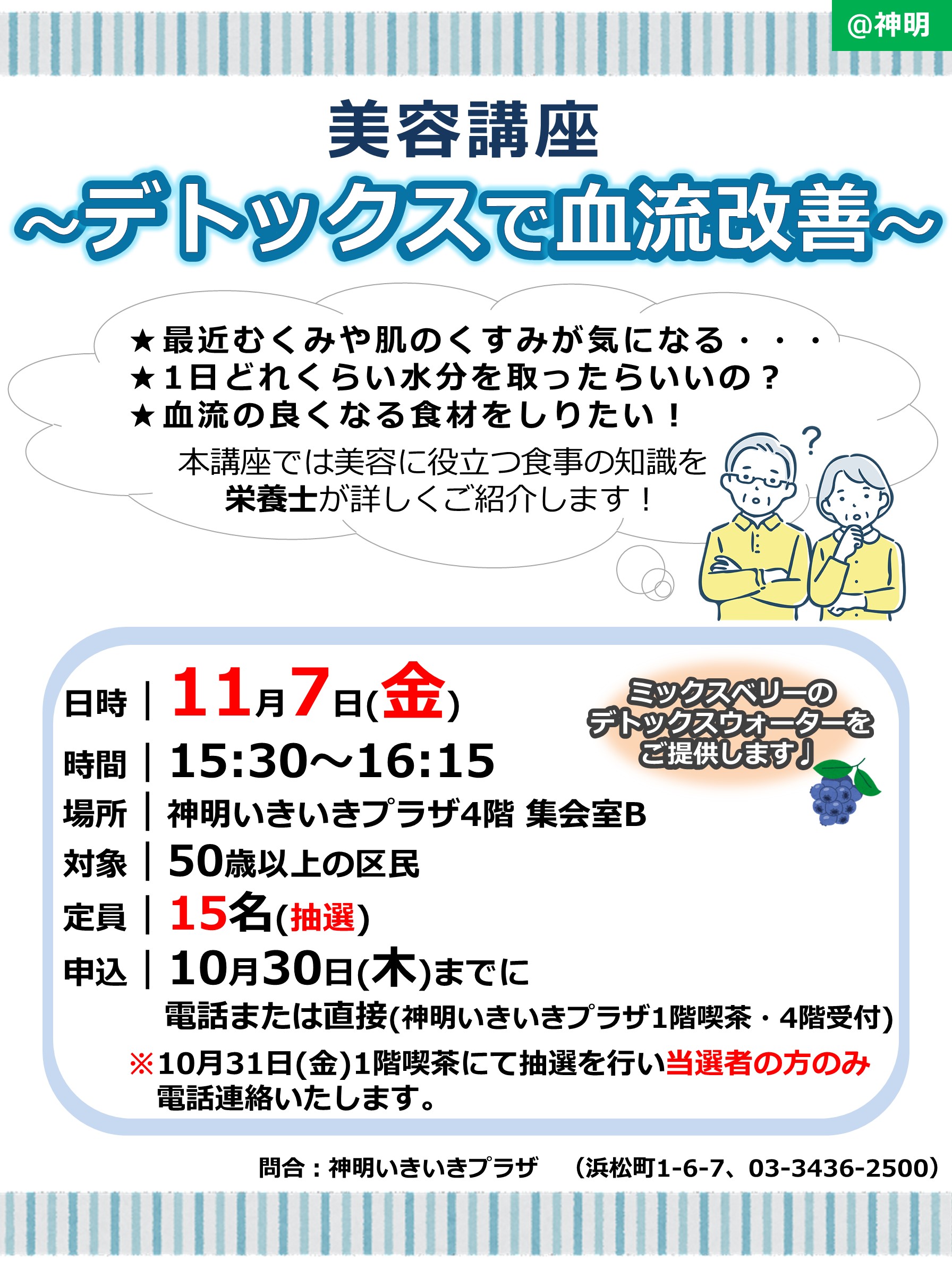 『美容講座~デトックスで血流改善~』を開催いたします!