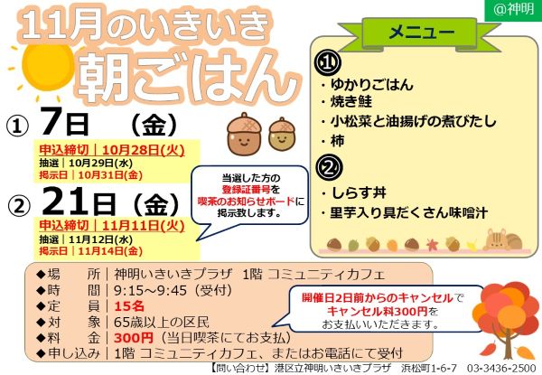 コミュニティカフェから11月のいきいき朝ごはんのご案内です☆