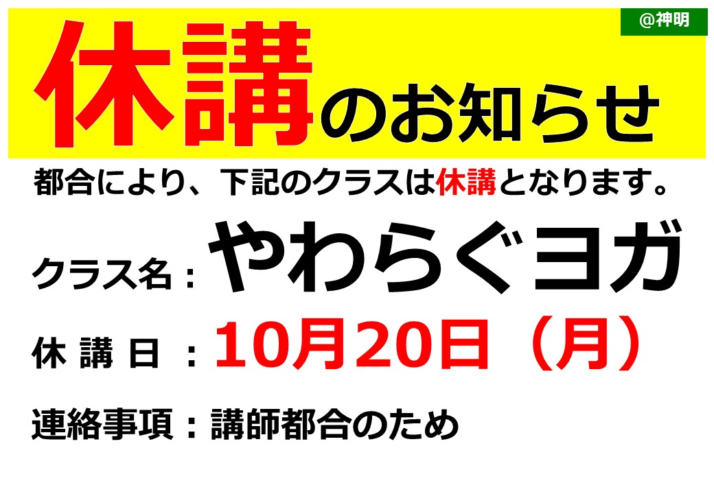 やわらぐヨガ休講のお知らせ