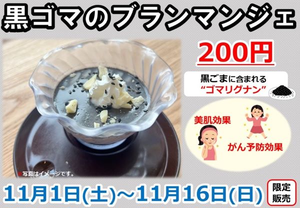 11月前半のスイーツは、黒ゴマのブラマンジェとなります。