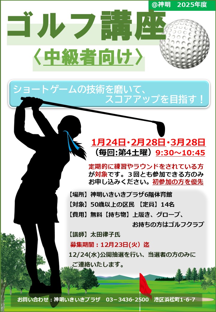 【ゴルフ講座(中級者向け)】を開催いたします!