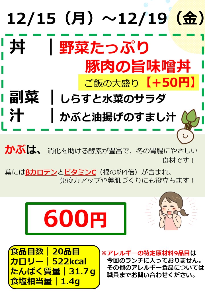 平日は、野菜たっぷり豚肉の旨味噌丼の販売です!!
