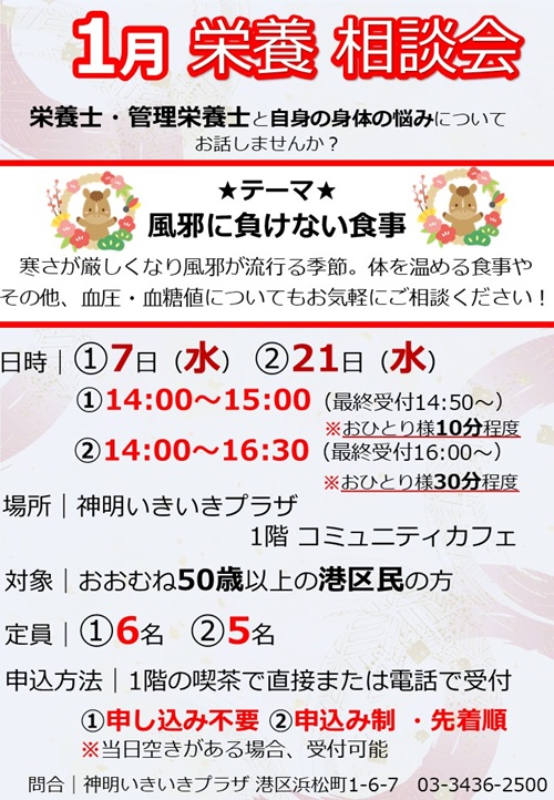 コミュニティカフェから1月の栄養相談会のお知らせです!