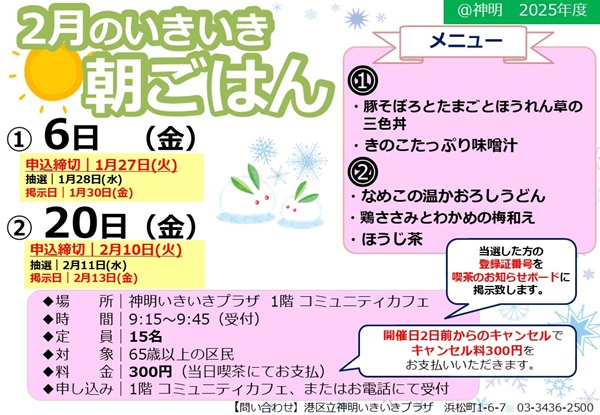 2月のいきいき朝ごはんのご案内です☆
