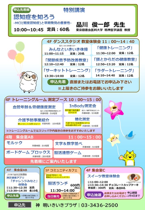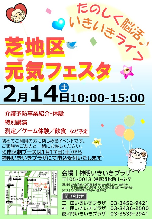港区介護予防事業の体験会、各種測定会、簡単脳トレゲームブースなどを実施します!!