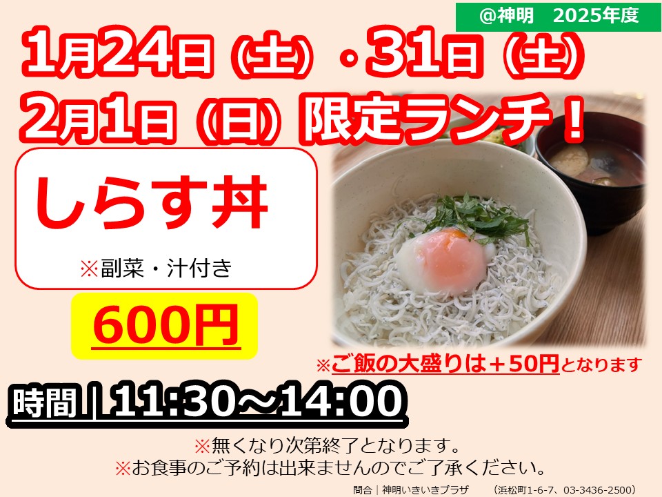 1/31・2/1土日ランチ販売のお知らせ!