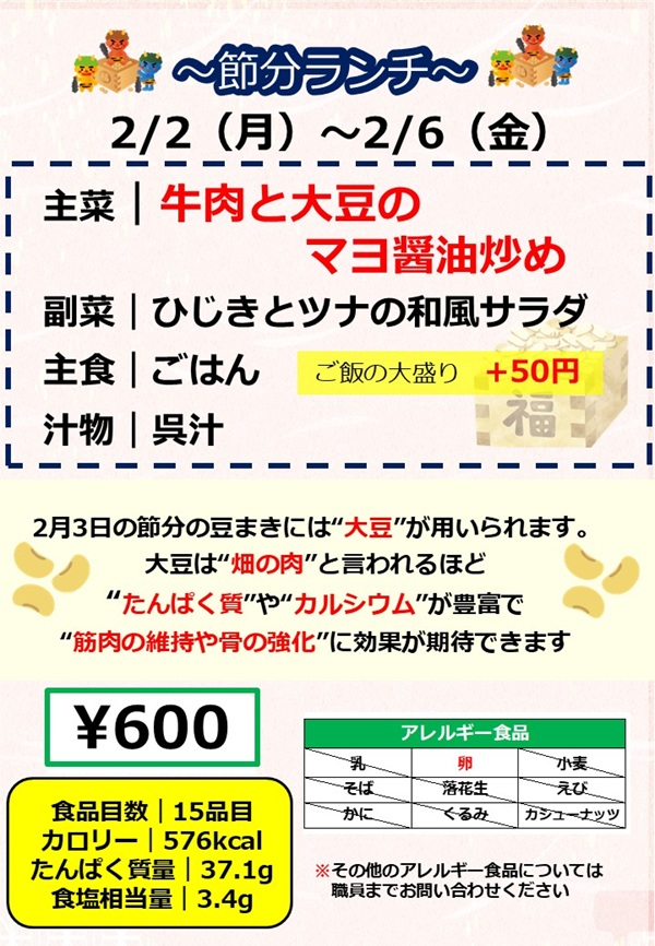 今週の月曜日からは、節分ランチの販売です!