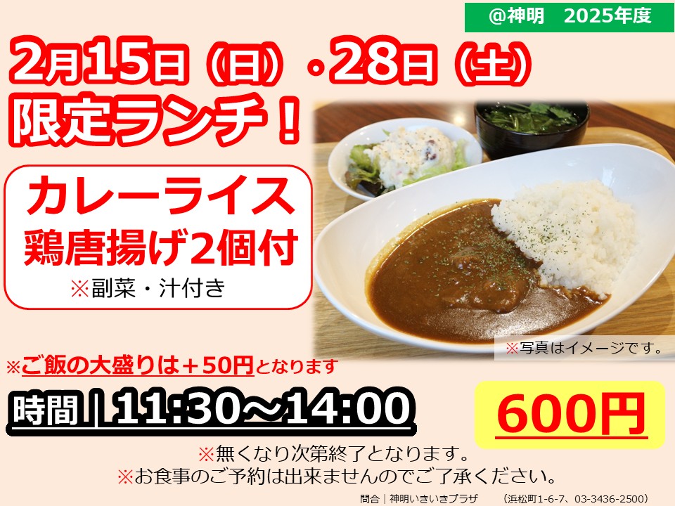 本日は、2月15日(日)・28日(土)限定で神明いきいきプラザ コミュニティカフェで販売するランチのお知らせです。