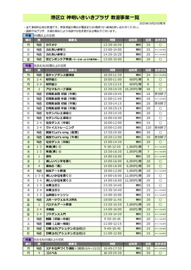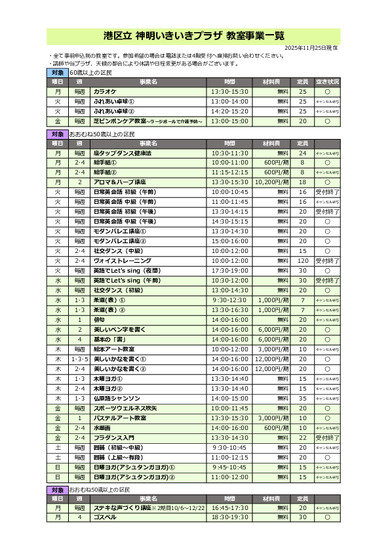 講師や当プラザ、天候の都合により休講や日程変更がある場合がございます。