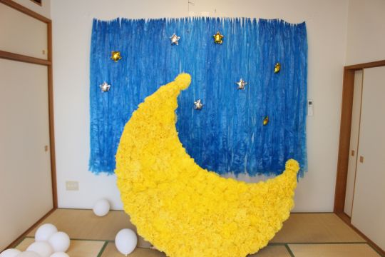星空や月をモチーフにしたフォトブースで、記念撮影!