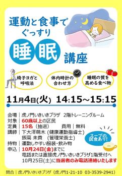 2025-10-14 『運動と食事でぐっすり睡眠講座』参加者募集中です!