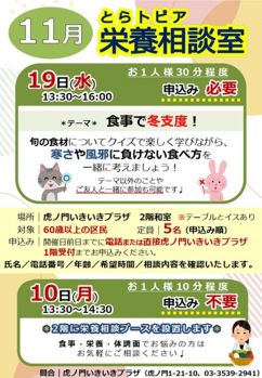 2025-10-17 11月10日(月)19日(水)「とらトピア栄養相談室」を開催いたします!