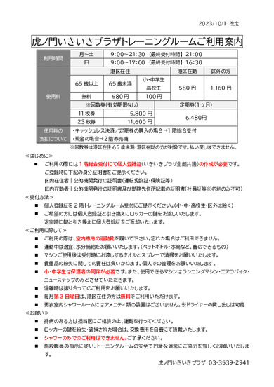 今回の記事では、虎ノ門いきいきプラザ2階トレーニングルームについて