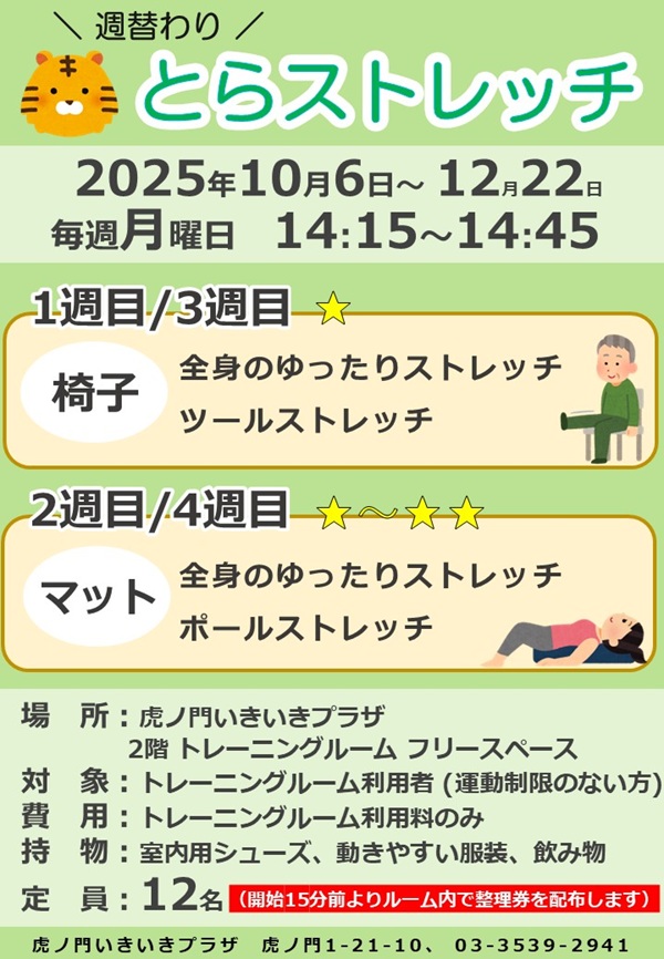 ①「とらストレッチ」 毎週月曜日 14:15~14:45