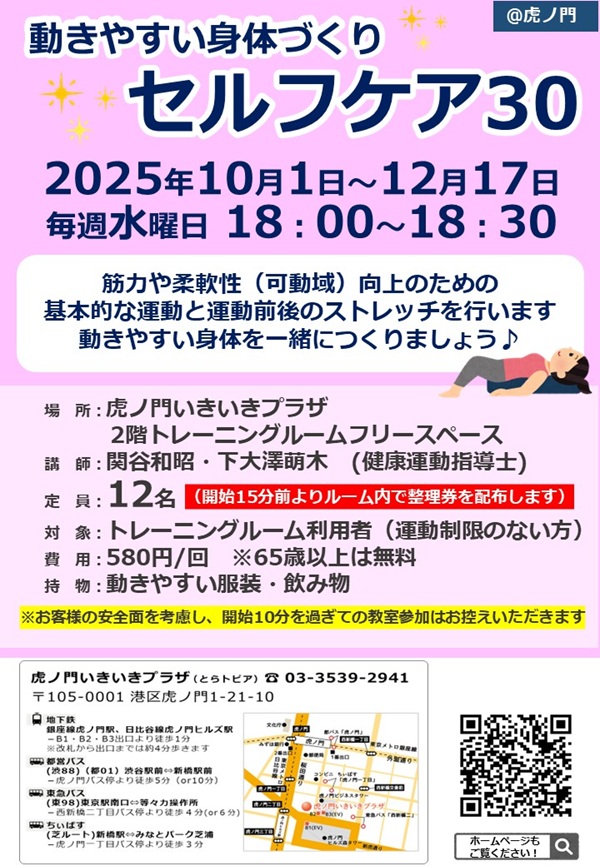 ◆開催場所:虎ノ門いきいきプラザ 2階トレーニングルーム