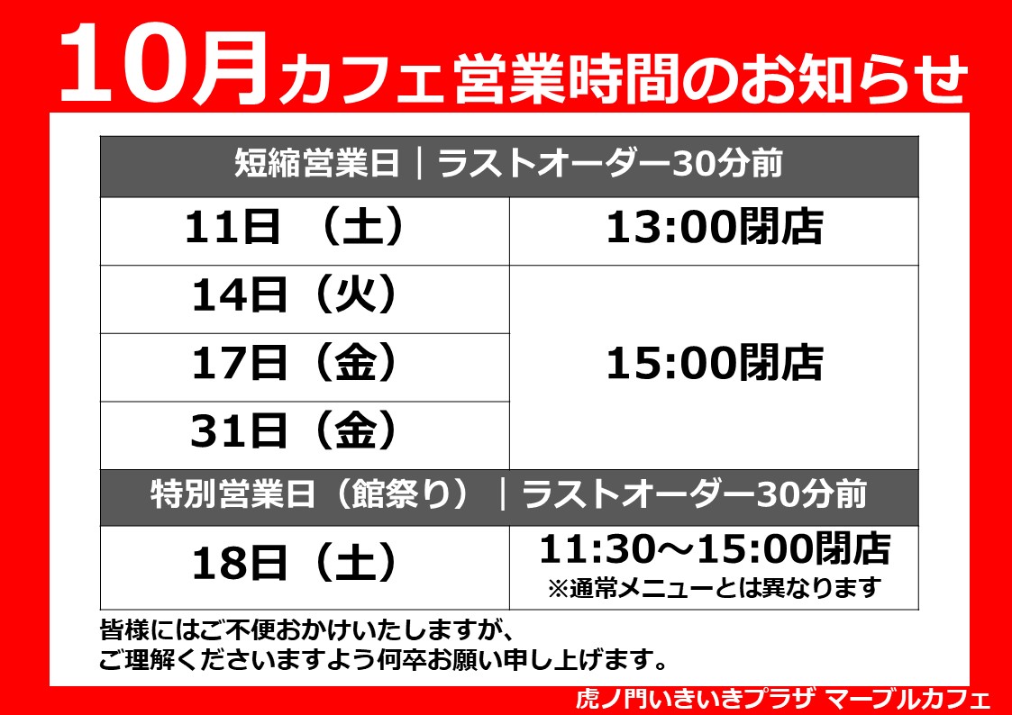 10月14日(火)・17日(金)・31日(金)は、15:00(LO.14:30)まで