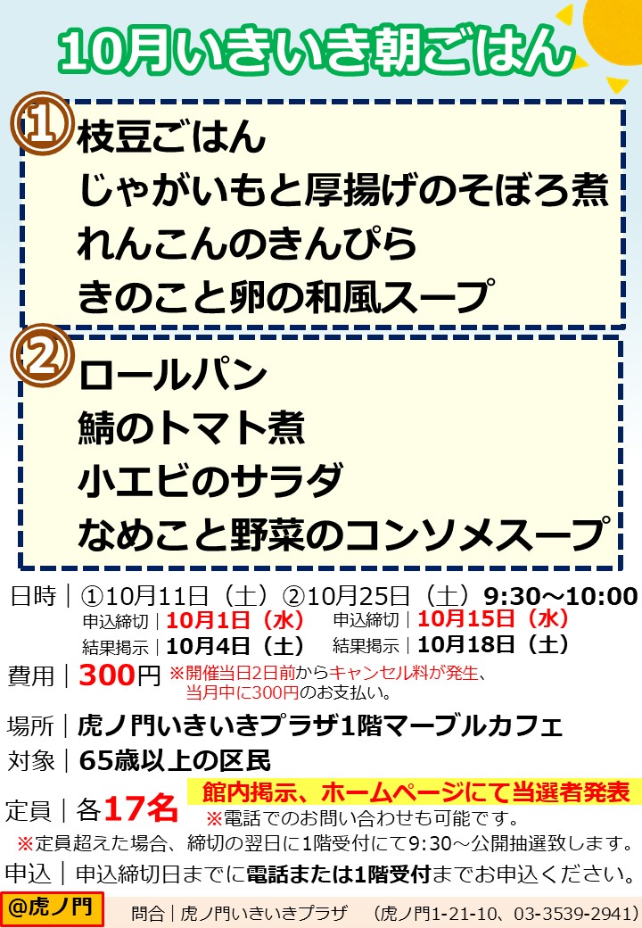10月11日・25日(土)に「いきいき朝ごはん」を実施致します!