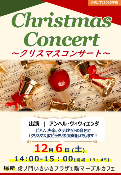12月6日(土)14:00~15:00で「クリスマスコンサート」を開催いたします!