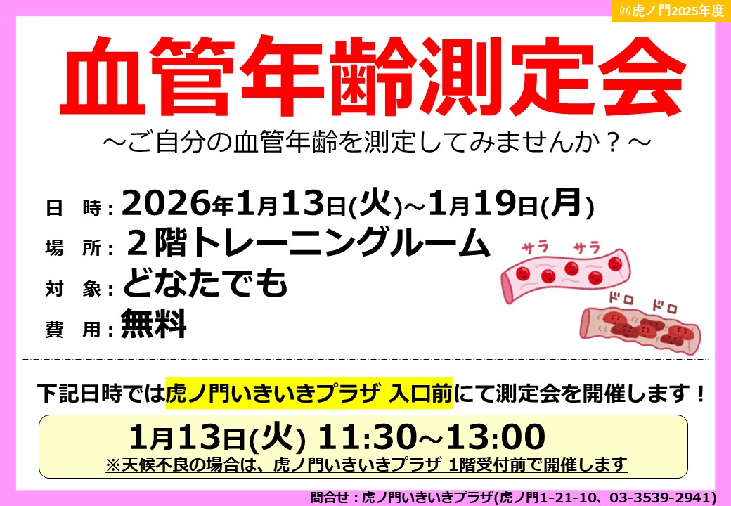 2階トレーニングルーム内にて血管年齢測定会を開催します!